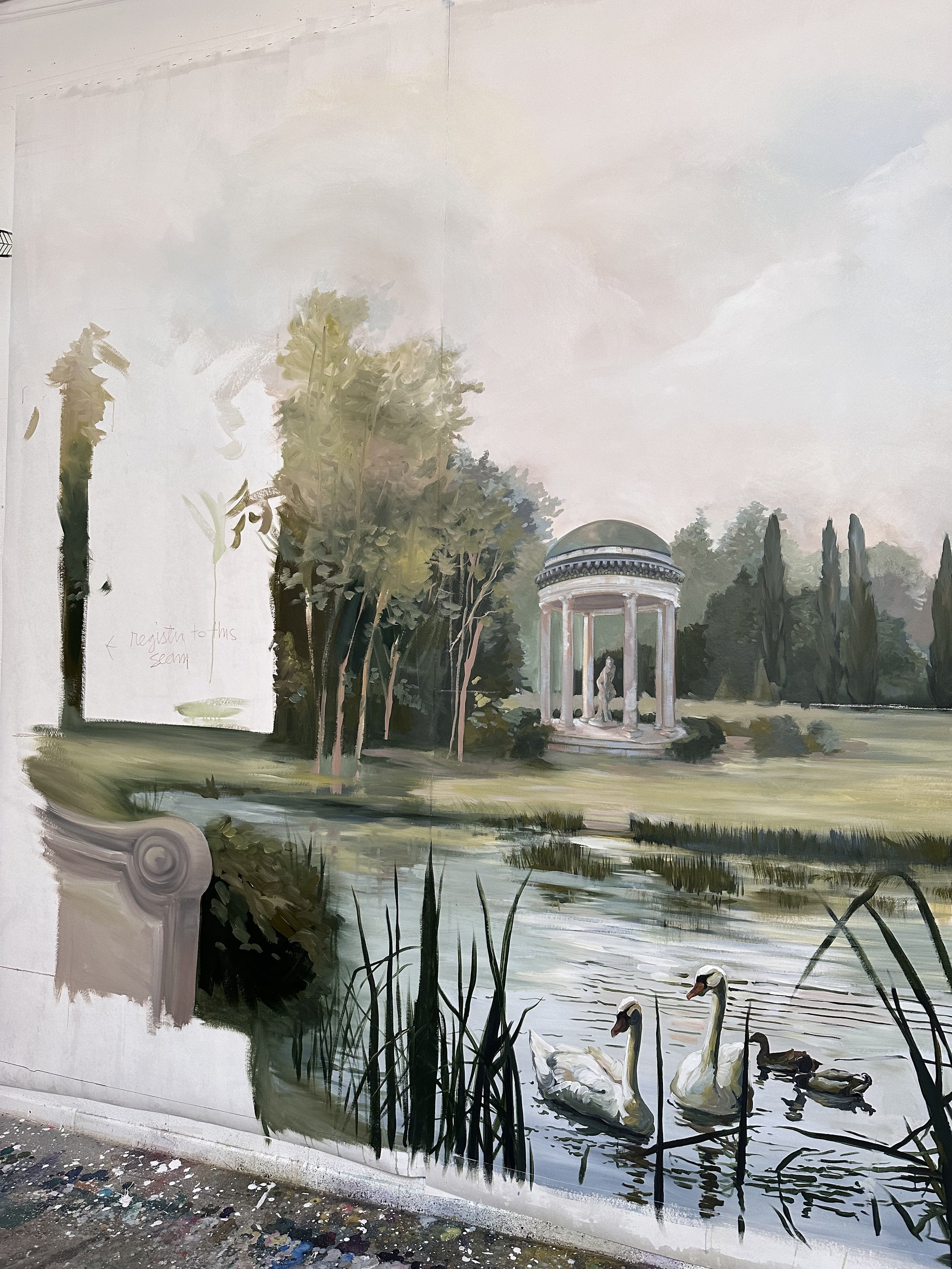 From the earliest days of her career, Gabrielle has painted walls, and the excitement has never left her. Working directly on architectural surfaces, she creates site-specific murals that become inseparable from the spaces they live in. Residential, commercial, or somewhere in between, each mural is approached with the same rigor and care as any canvas.