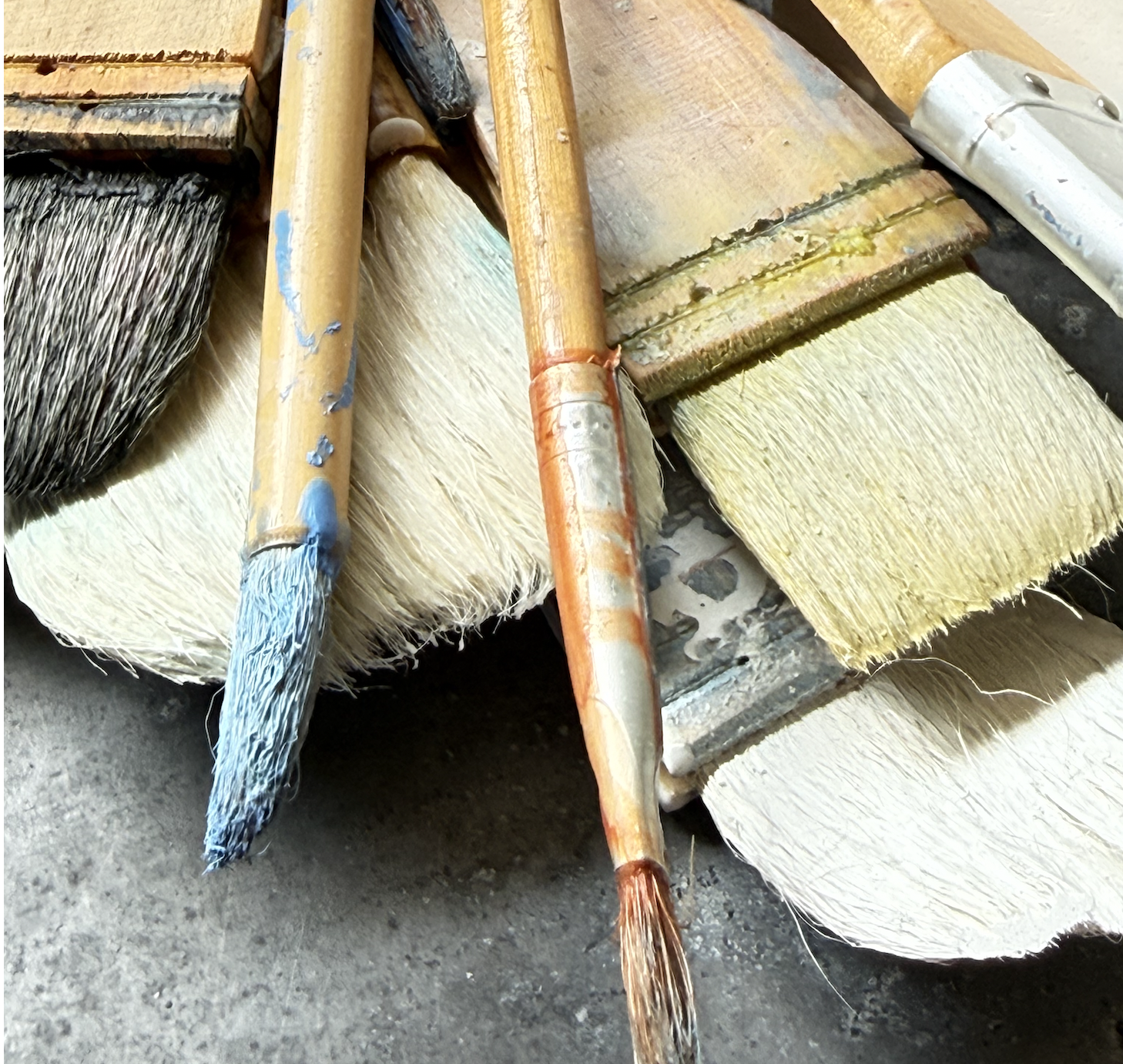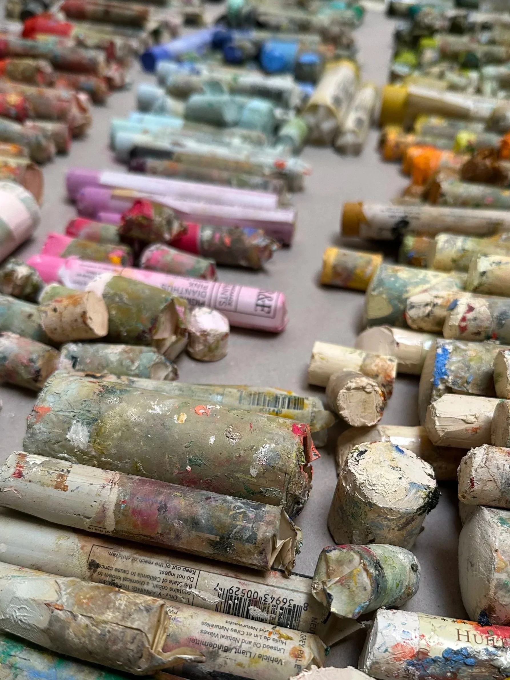 Gabrielle works fluently across oils, acrylics, encaustics, and an ever-expanding range of mixed media, from PaperClay to vintage maps. The material is always chosen according to the needs of the finished piece.
