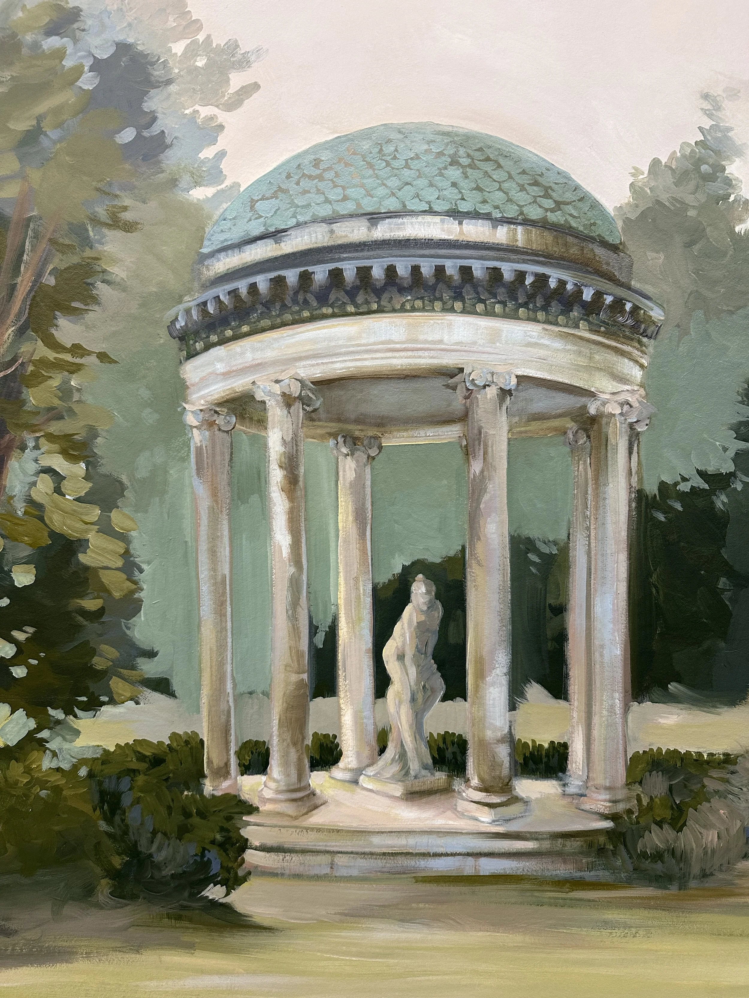 For spaces that call for something other than a painted wall, Gabrielle creates custom hand-painted wallpaper. This is a form of artwork that carries the unmistakable quality of something made entirely by hand. There is a beauty in handmade wallpaper that printed alternatives simply cannot replicate: the subtle variations, the texture, the sense that a human being was present in every stroke.